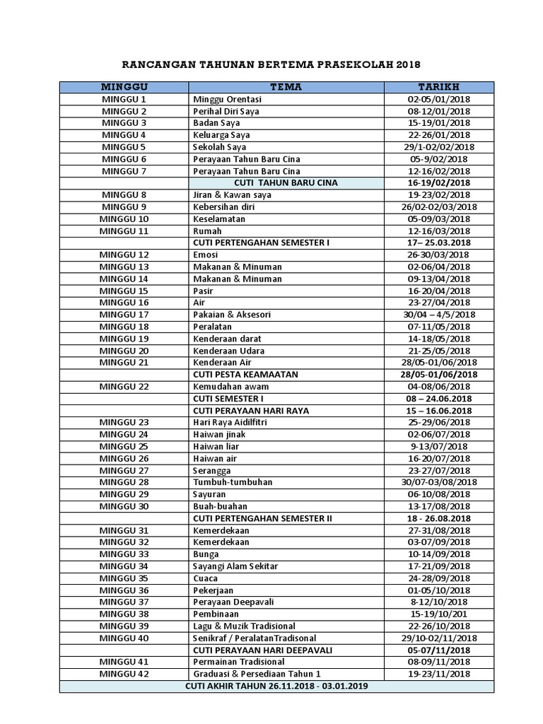 Rancangan pengajaran tahunan prasekolah 2018. Check spelling or type a new query. We did not find results for: Maybe you would like to learn more about one of these?
